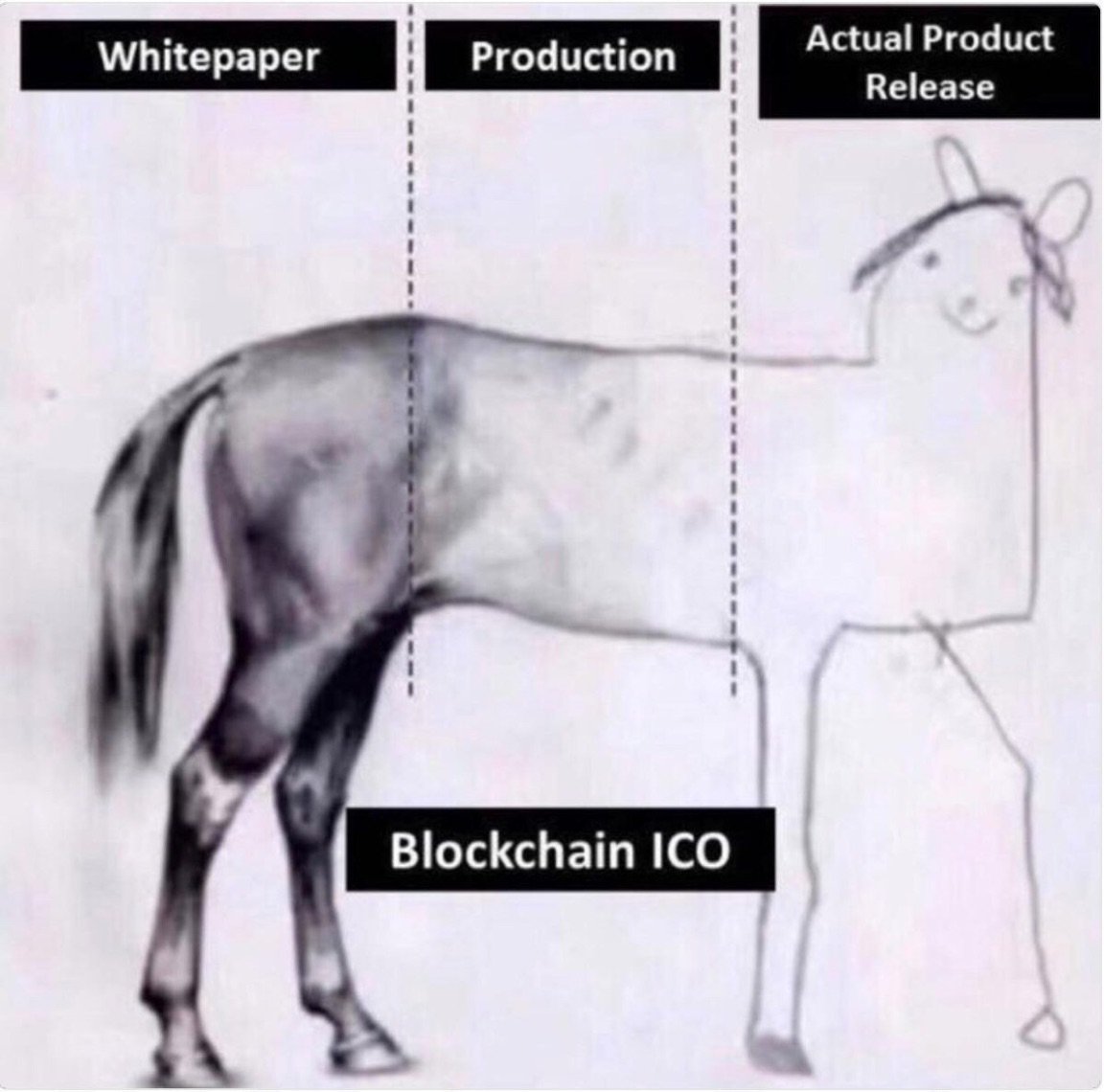 Una foto representativa de como empiezan y acaban la mayoría de proyectos que se quieren subir al carro de la blockchain sería esta;